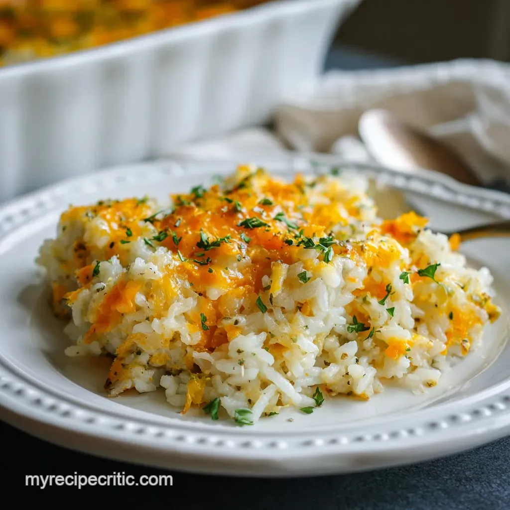 Let the casserole sit on the counter for at least 5 minutes before serving. This allows the starches in the rice to set, making it easier to scoop and ensuring the juices don't just run to the bottom of the plate.