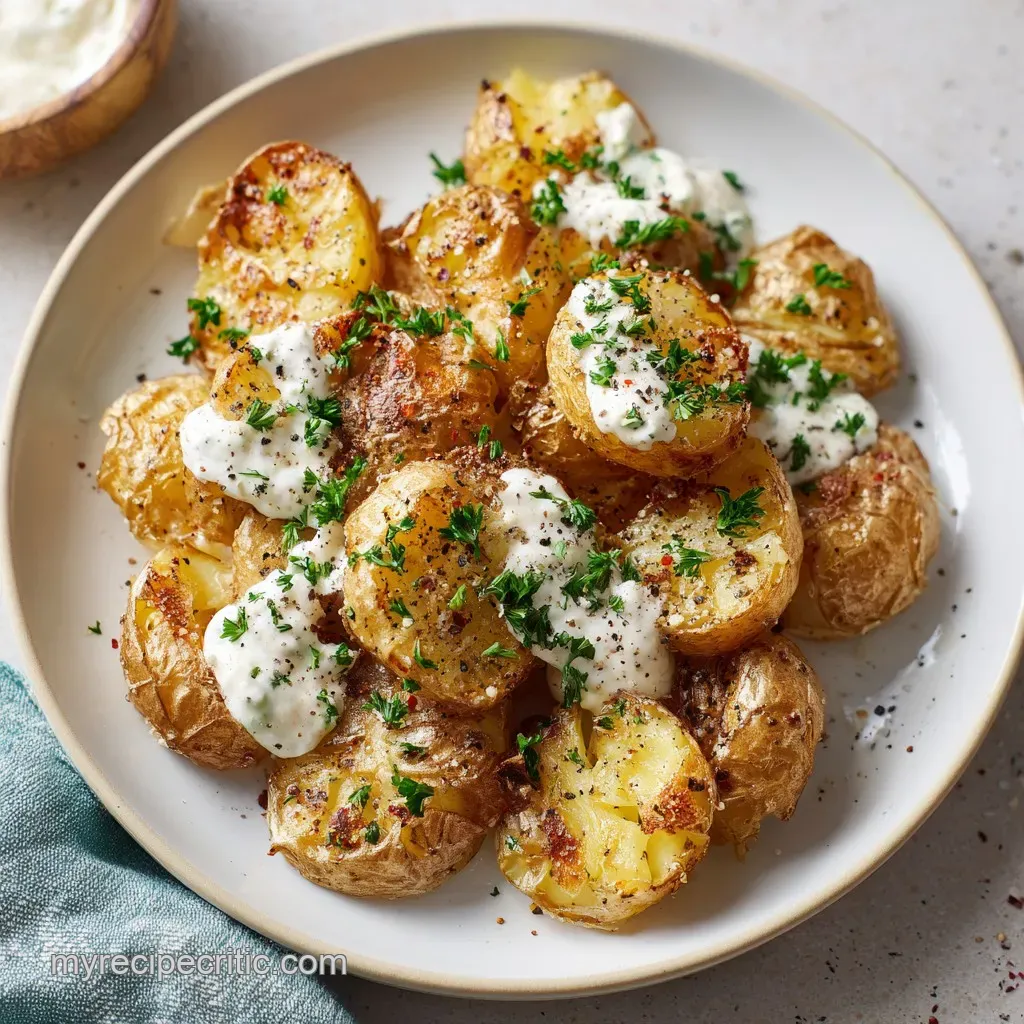 Then I tried the "smash" method. I remember the first time those potatoes hit the hot oil and started to sizzle, and when I pulled them out, the edges had turned this gorgeous, dark brown color. Pairing that shatter crisp base with a cold, tangy dressing was the lightbulb moment.