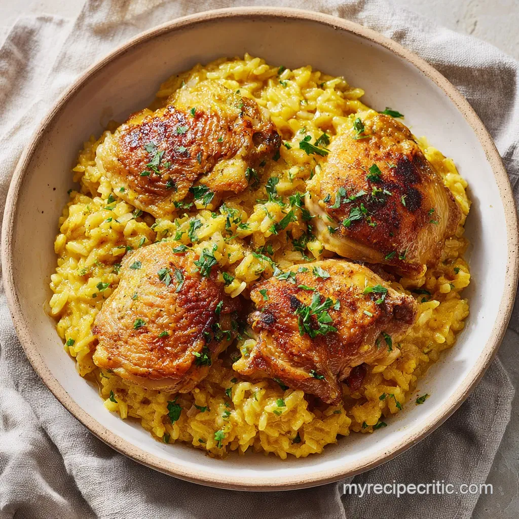 For the crockpot version, you still need to sear the chicken in a pan first trust me, it’s worth the extra dish. Place the aromatics and rice at the bottom, add the stock, and lay the seared chicken on top. Cook on low for 4 to 5 hours.