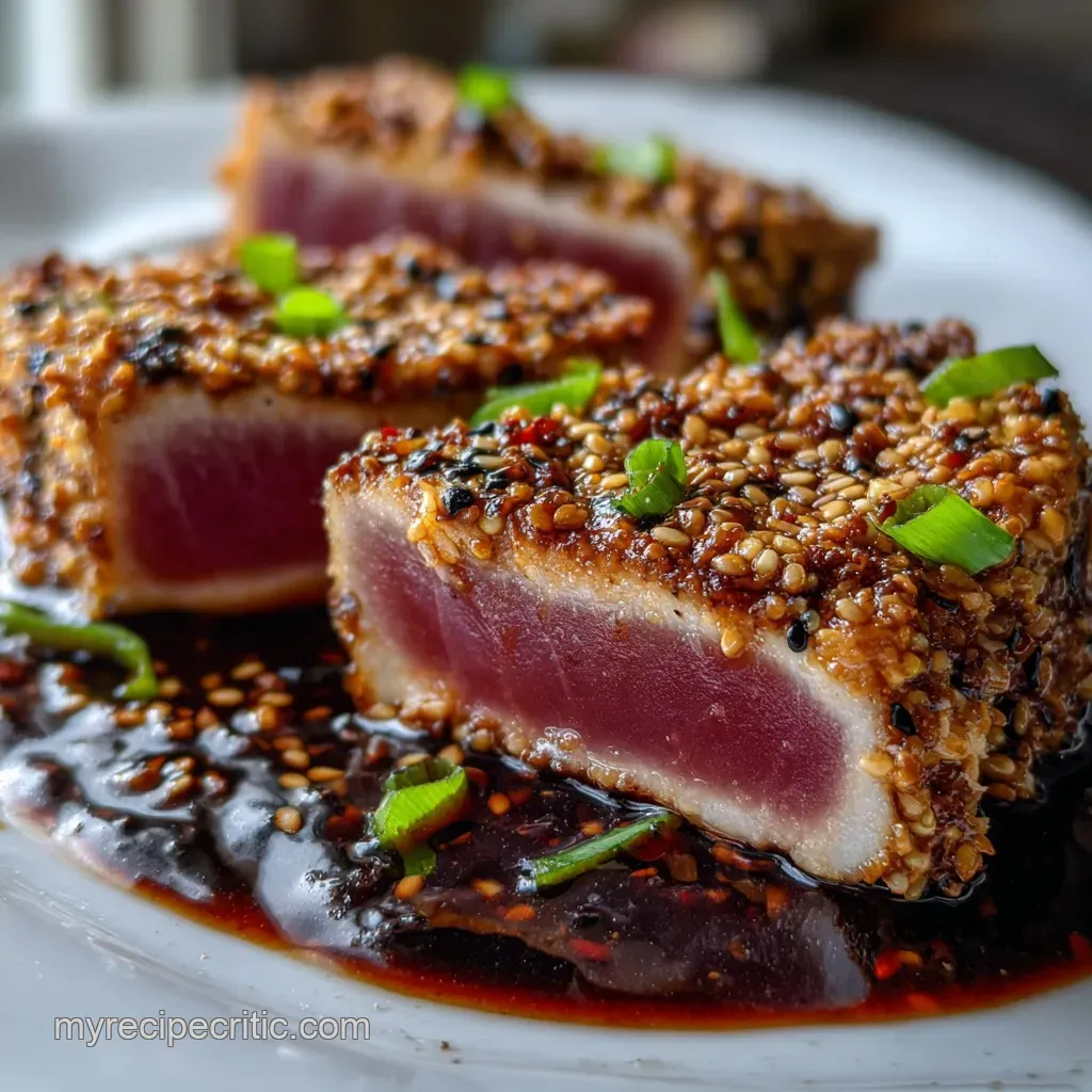 This dish pairs perfectly with a bright, crisp counterpoint. I love serving this with a refreshing noodle salad or simply steamed rice and some blanched green beans. A great vinaigrette is key here especially something zesty. You could toss a salad with my fabulous Greek Dressing Recipe: Authentic Zesty Homemade Vinaigrette for a great contrast. The cool, light flavors balance the savory crust beautifully. This is definitely one of my go-to Ahi Recipes Dinners, perfect for showing off!