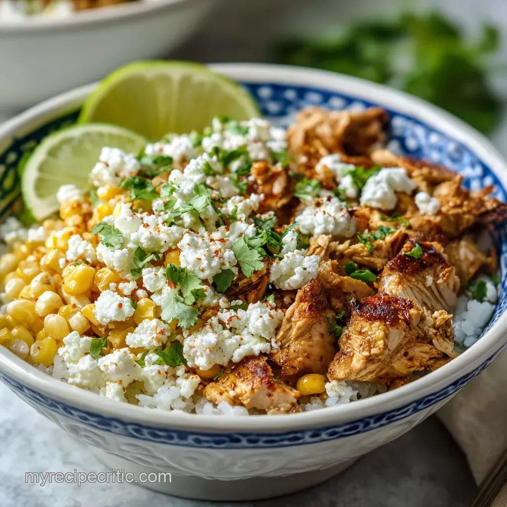 When it comes to serving your Street Corn Chicken Bowl, presentation actually helps the flavor. We eat with our eyes first, right? I like to arrange the components in "zones" rather than just tossing it all together. Put the rice down first, then the chicken mixture on one side, and the avocado on the other.