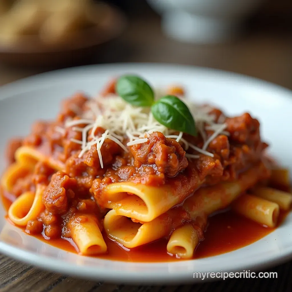 Simmering for a minimum of 45 minutes transforms simple ingredients into a complex, savory foundation. This long, slow cook allows the fats from the meat to emufy beautifully into the tomato base, ensuring every tube of pasta is coated in glorious flavour, not just surface sauce.