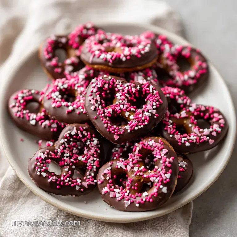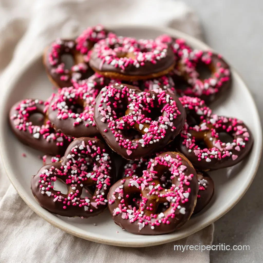 Chocolate Dipped Valentine Pretzels with Pink Sprinkles