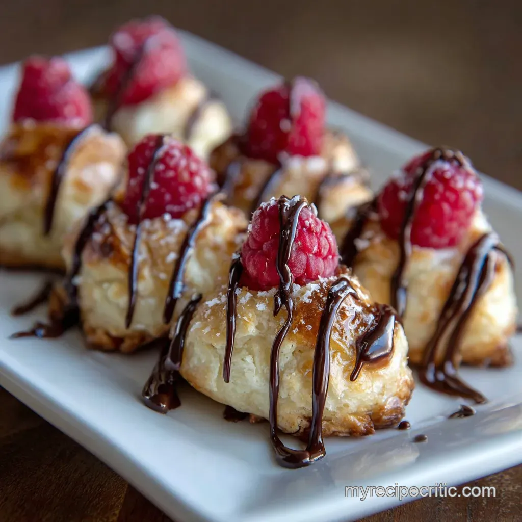 These are at their absolute best served slightly warm give them about 5 10 minutes out of the oven so the Brie is perfectly molten but the pastry is still crisp. This cooling time also allows your delicious dark chocolate drizzle to set just enough without sliding right off.